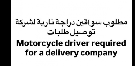 مطلوب سواق دراجة نارية لشركة توصيل طلبات